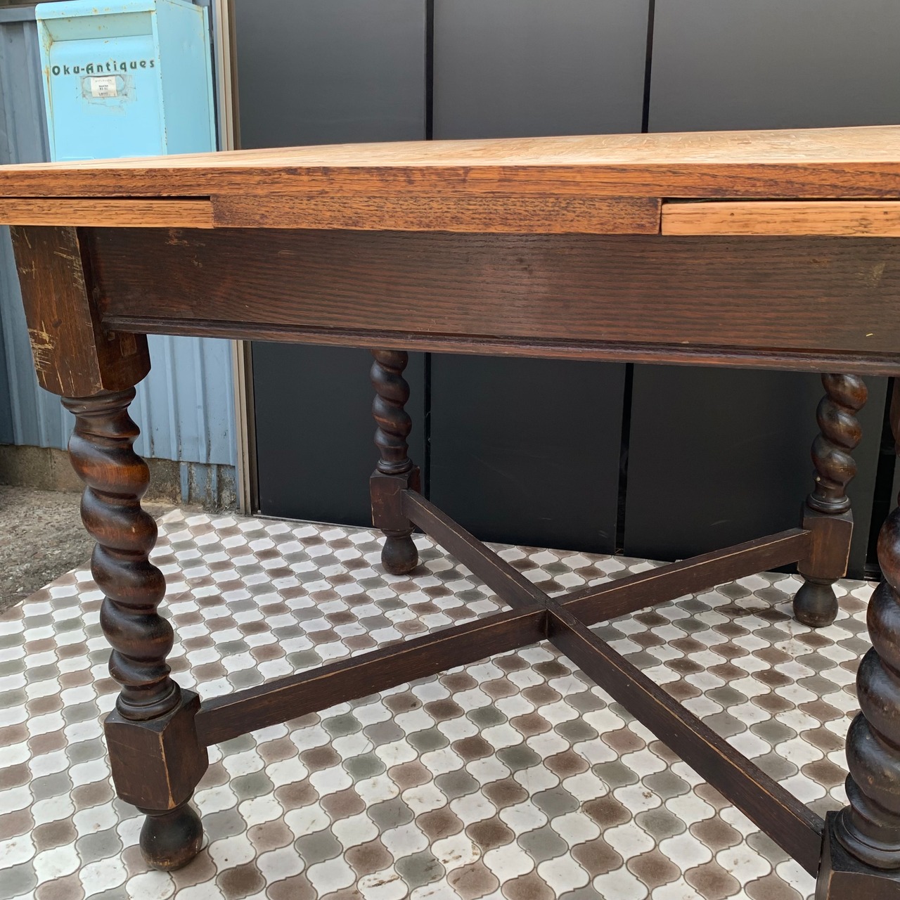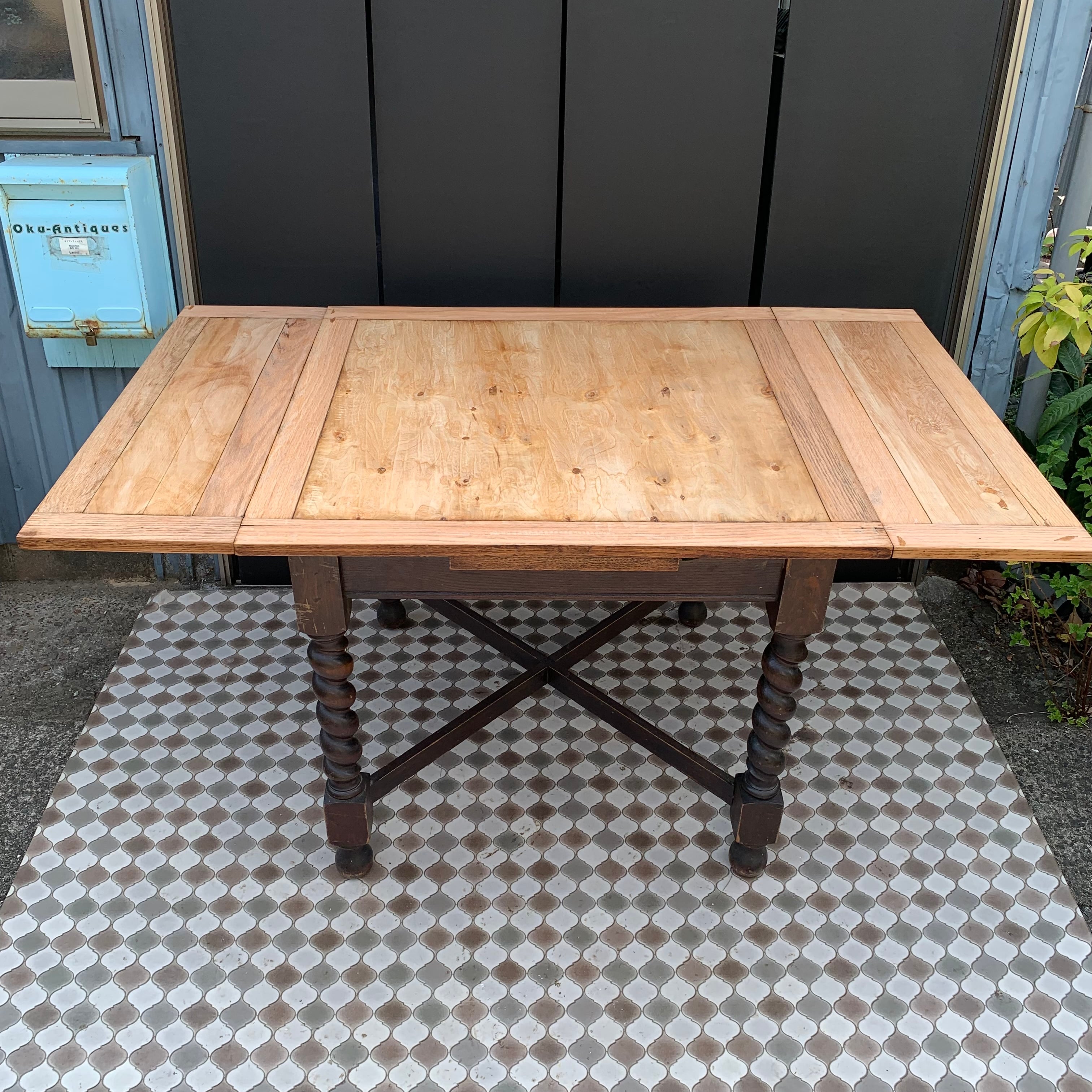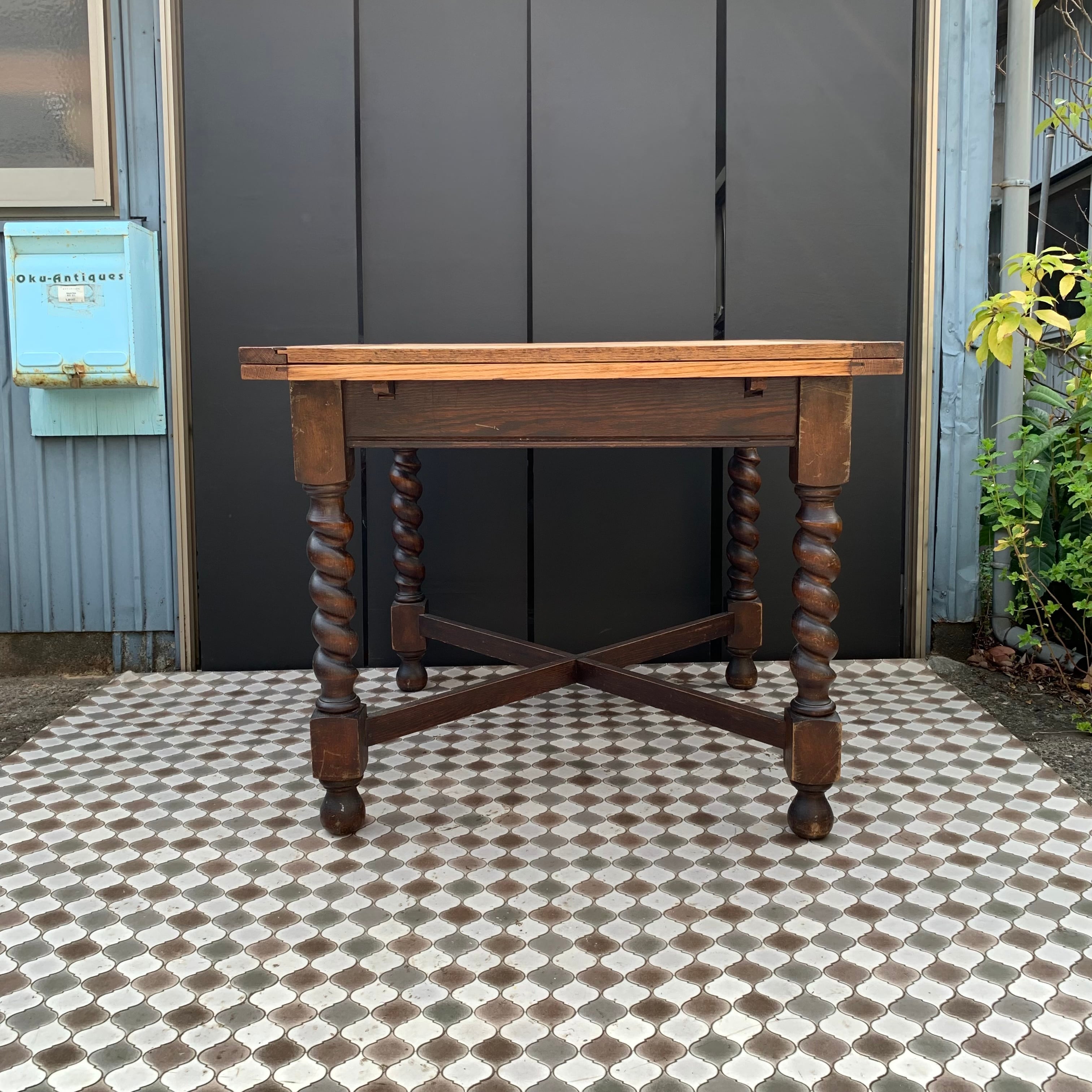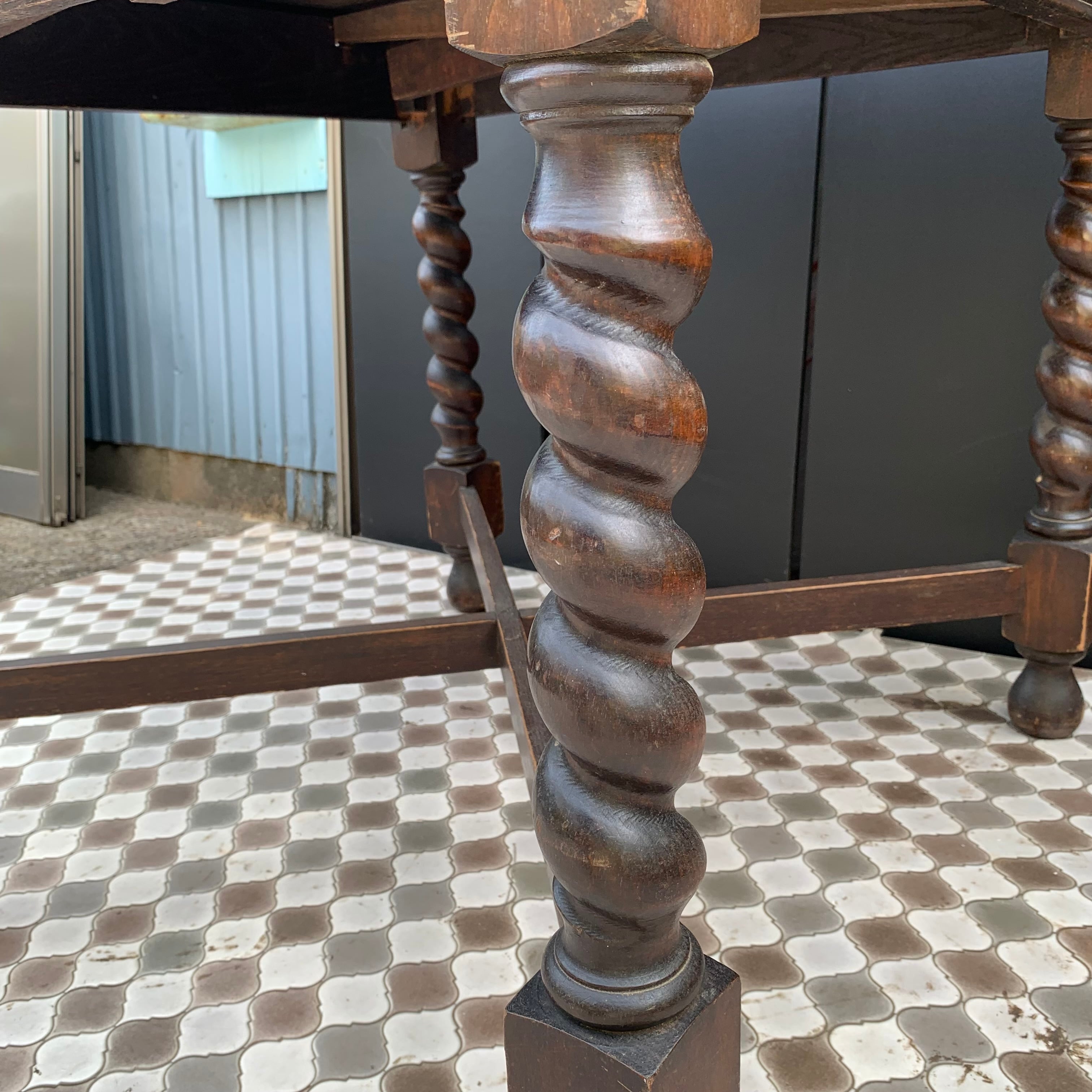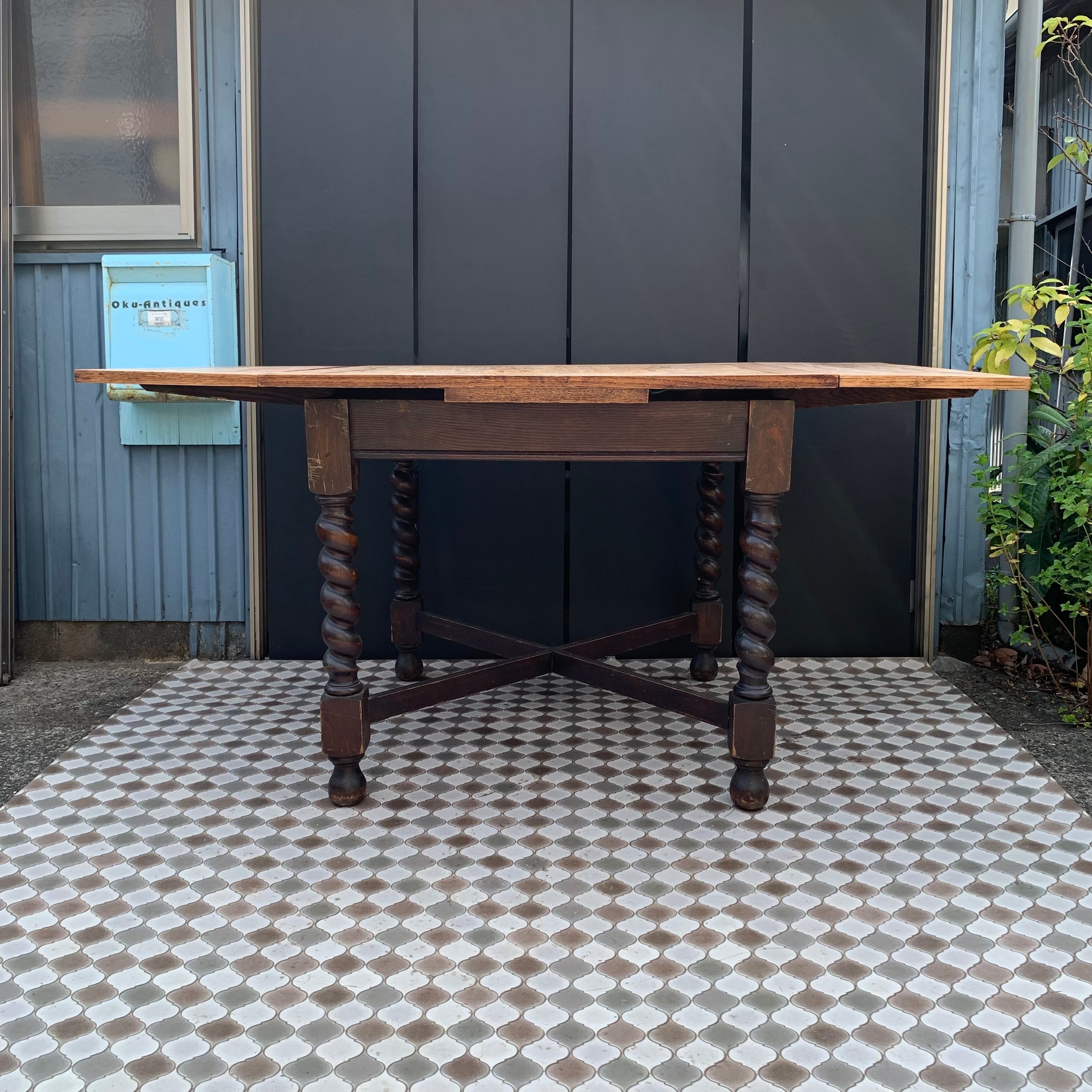 アンティーク ドローリーフテーブル/バリーシュガーツイストレッグ/伸長式/ダイニングテーブル/イギリス A1