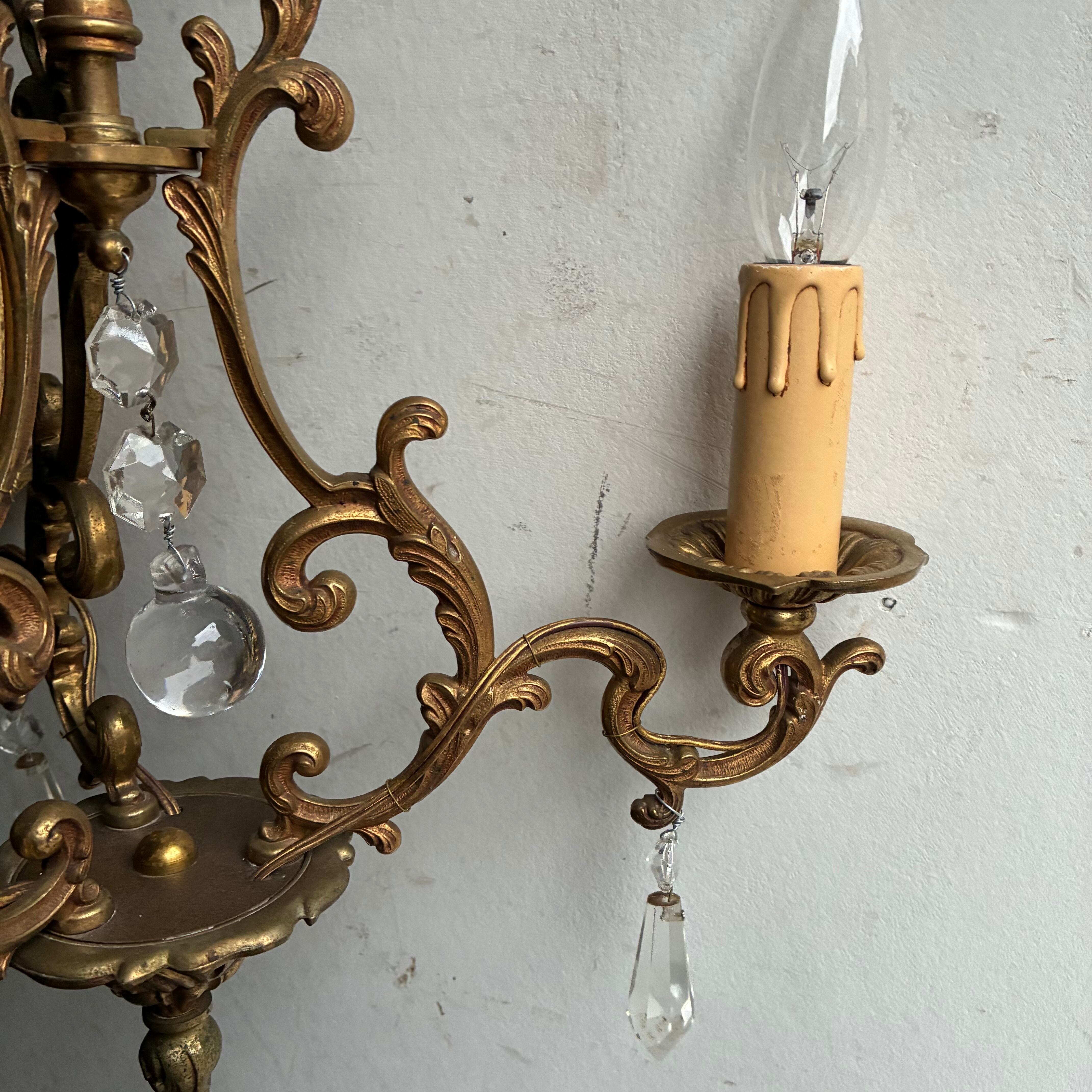 アンティーク 3灯シャンデリア/クリスタルガラス/フランス B1