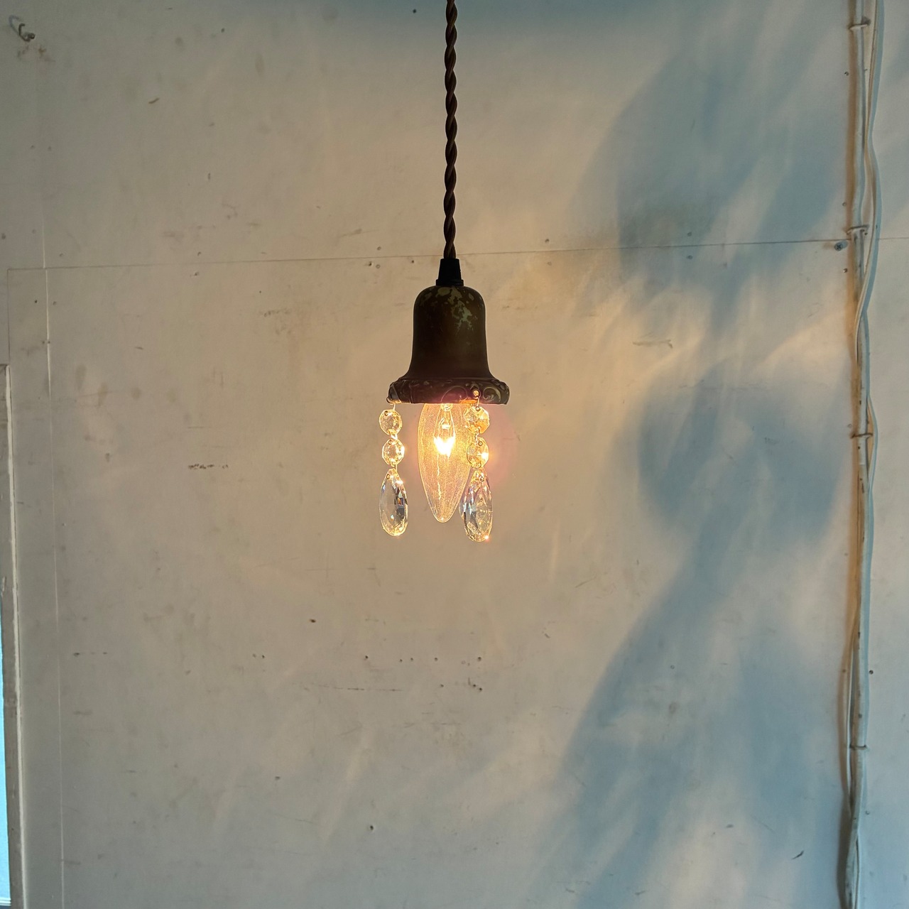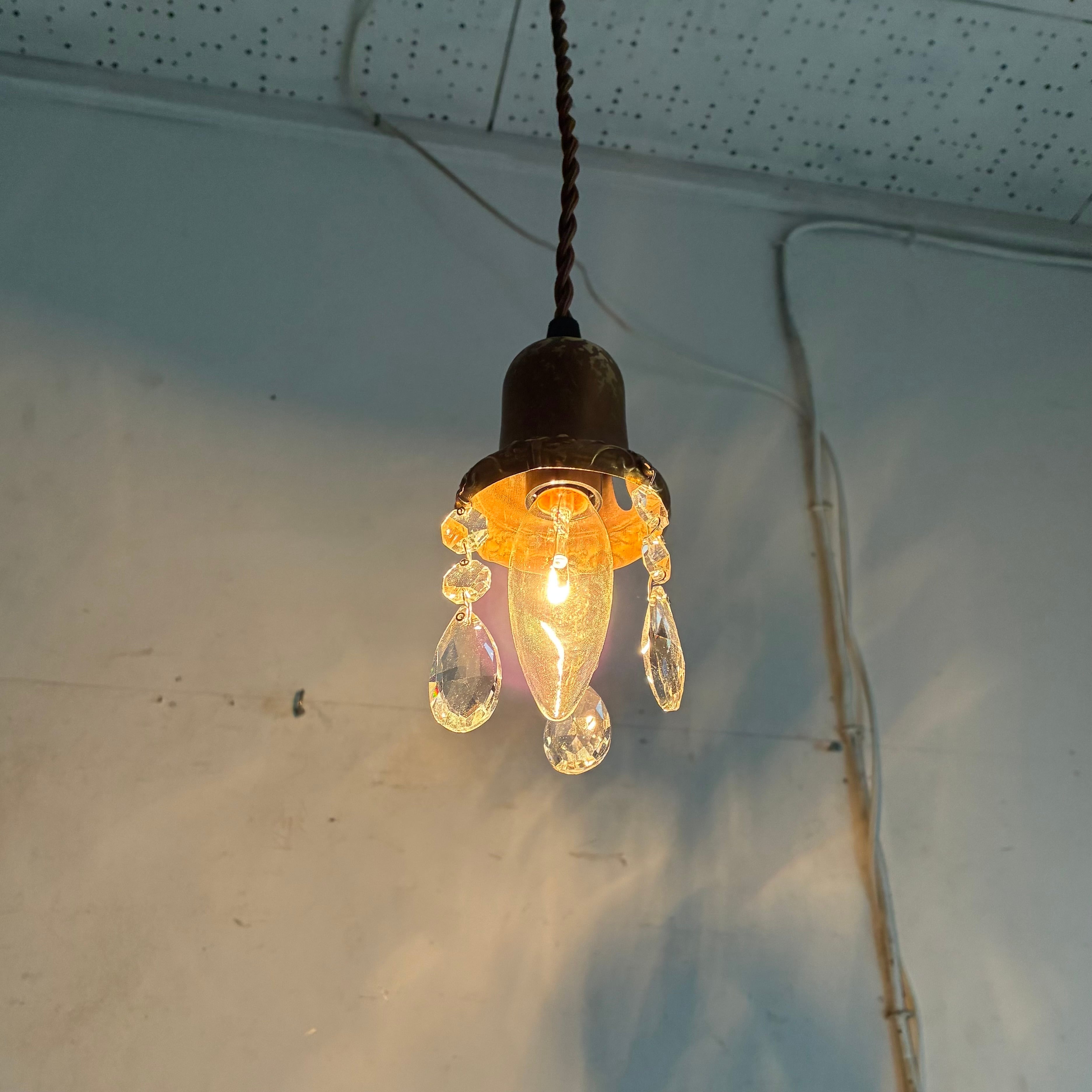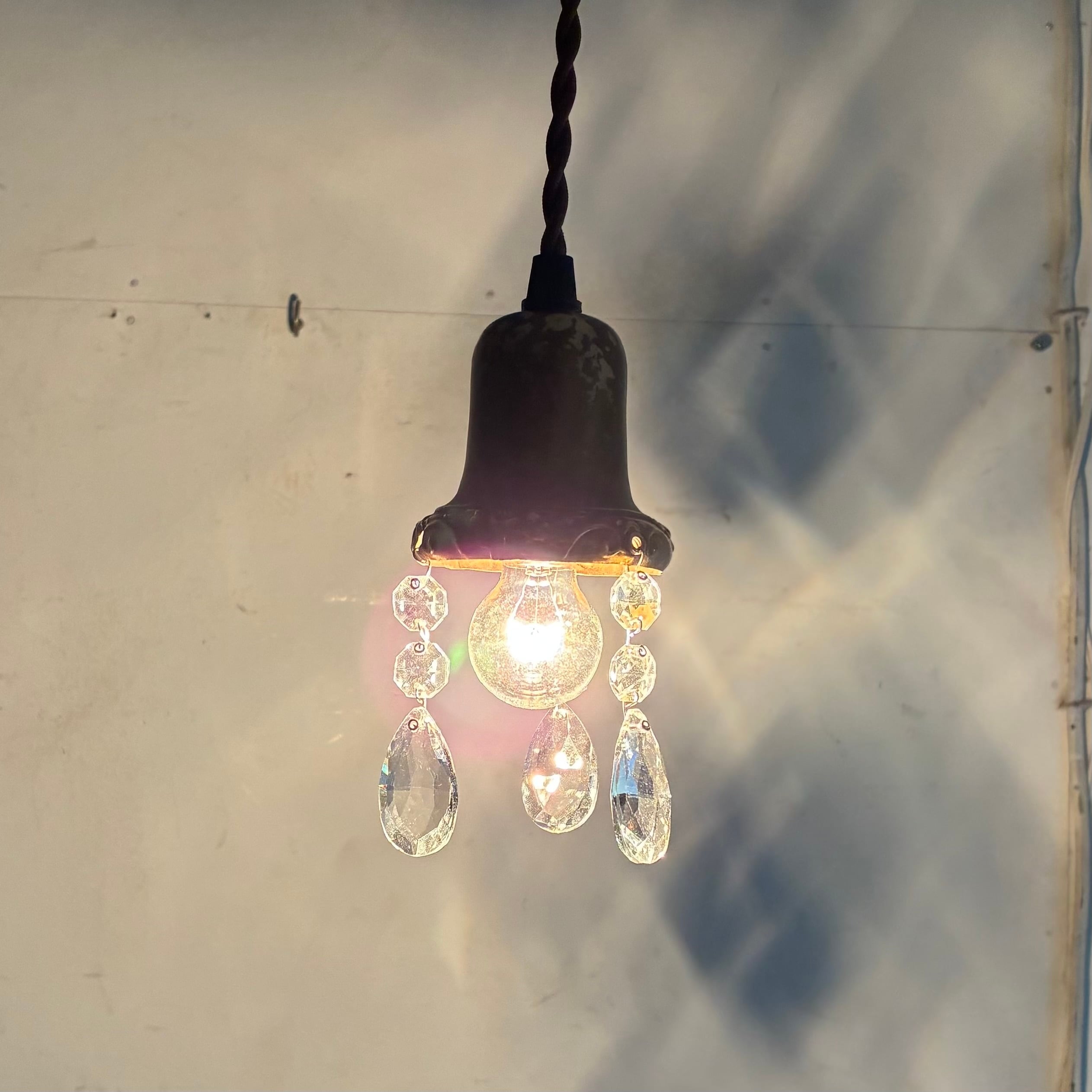 アンティーク ペンダントランプ/ドロップガラス/アメリカ C1